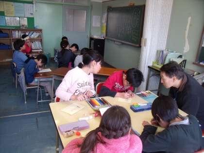 1つのグループは、6年生を送る会の招待状作りをしています。