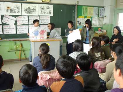 6年生が外国語活動の時間に取り組んできた「桃太郎紙芝居」が完成しました。