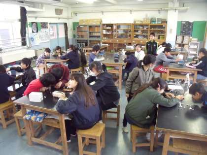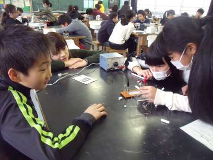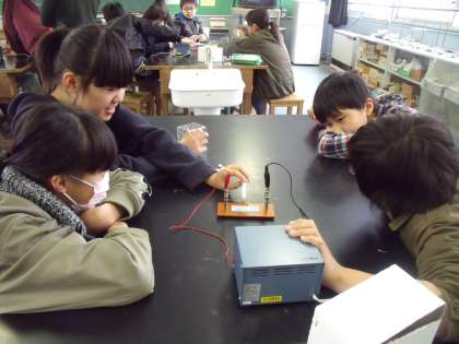 電熱線は相当熱くなるので、安全に気を付けなければなりませんが、どのグループも落ち着いて実験しています。
