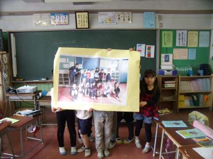 校長:「ねぇ、みんなでクラス写真の紙を持ってよ!」