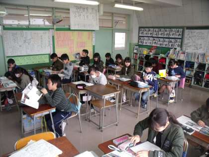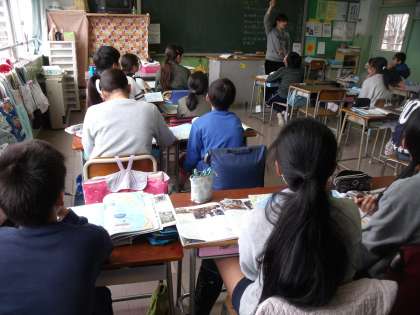 漢字テストが終わってホッとした表情の子供たちでしたが、何事が起きたのかと一斉に校長の方を見ます。