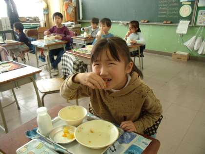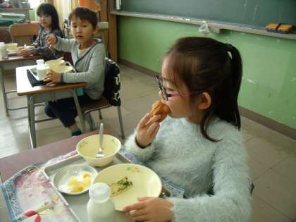 校長が教室に行ったときには、もう食べ終わっている子もいました。