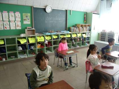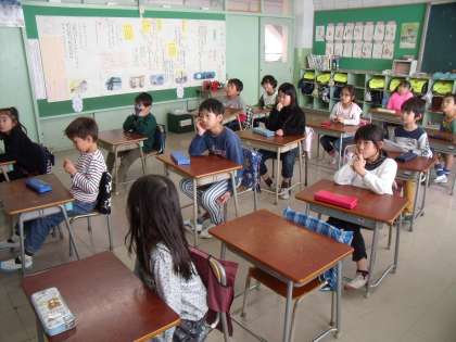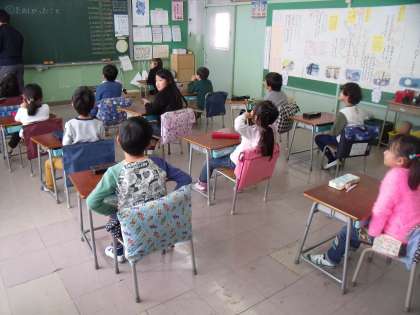 1年生の後ろの黒板に、次のような文が書いてあります。