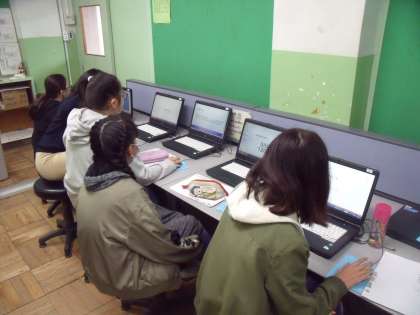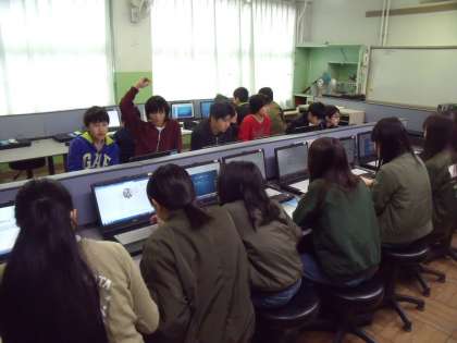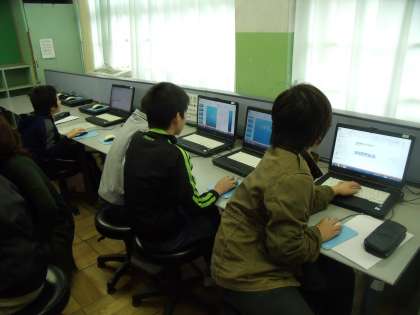 パソコン室で、プレゼンテーションソフトを使い、まとめの活動に入っています。