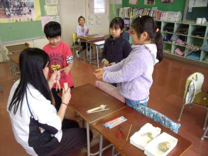 粘土や竹ひごがいくつ必要か考えることで、立体の特徴に気付いていきます。