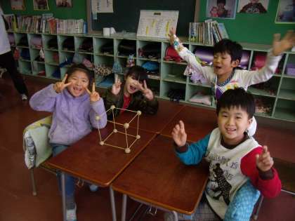 なかなか、さいころの形にするのが難しい作業でしたが、うまくつなげることができて、子供たちもうれしそうです。【校長】