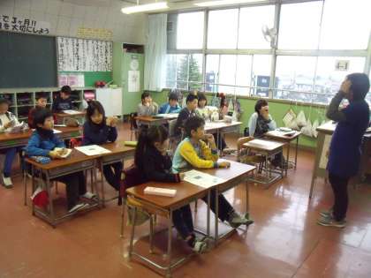 4年生も、これまでの学習を振り返りながら話を聞いています。