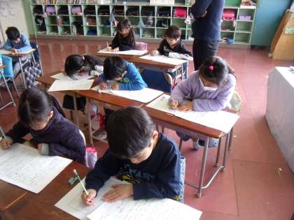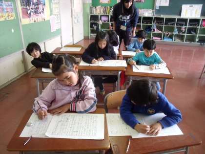 国語の「楽しかったよ、二年生」の単元で、この1年間のことを詳しく思い出し、作文に書く学習に取り組んでいる2年生。