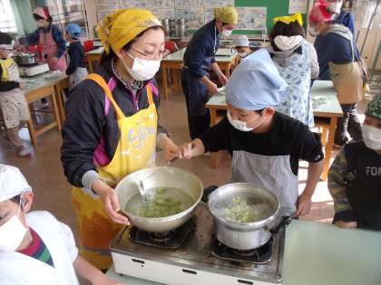 あさひ学級の今年度最後の調理実習は、春にちなんでよもぎだんご作りです。