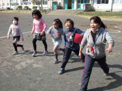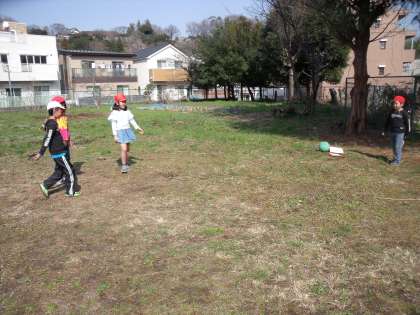 今日は、実際に校庭に出て、調べてきた遊びを試します。