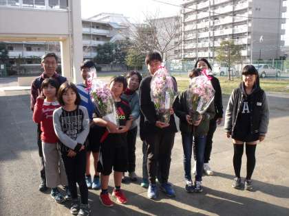 代表委員の児童は、今日は特別に、地域の育成指導員の皆様と一緒に、児童館、郵便局、ハイネス憩の丘に環境美化の一環でお花を届けに行きました。【校長】