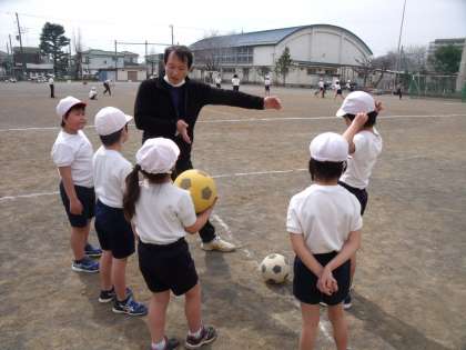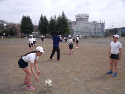 高学年はサッカーの試合ですが、その前に基礎練習。