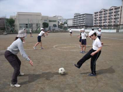 互いにパスをしたり、トラップの練習をしたりしています。【校長】