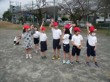 1年生が校庭で体育をしています。