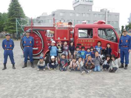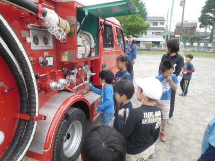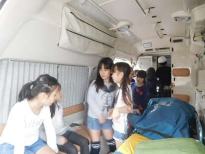 消防写生会後に3年生は写生会卒業と今後の社会科の学習もかねて消防車、救急車の見学をさせてもらいました。