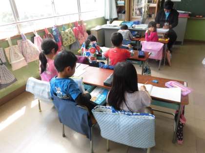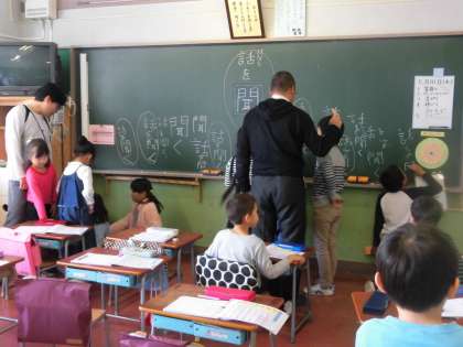 1・2年生の授業の様子です。2年生の授業に副校長先生も登場しています。