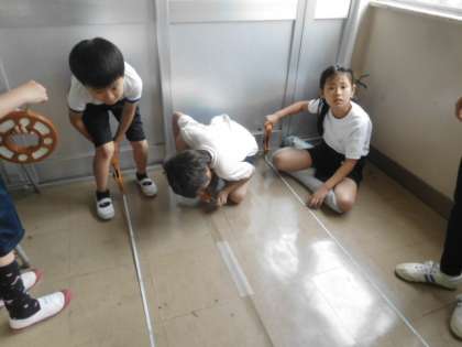 長さの単位を学習する必要性や実際に物を使って長い場所を測ってみるなど子供たちは楽しそうに学習していました。