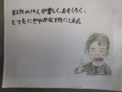 「8班の14人が楽しく、おもしろく、とてもにぎやかな班にします!」