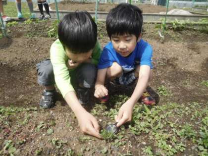 さぁ、畑で実際に子葉はどこにあるのだろう?探します。