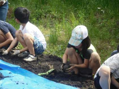 そんな中、子供たちは少し息抜きに泥遊びも!?