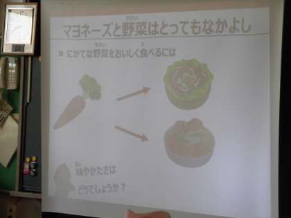 今日、1・2時間目にキューピーの方による出前授業が行われました。