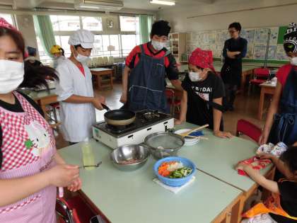 包丁やコンロを使って、ちょっぴり緊張の子もいたかな?