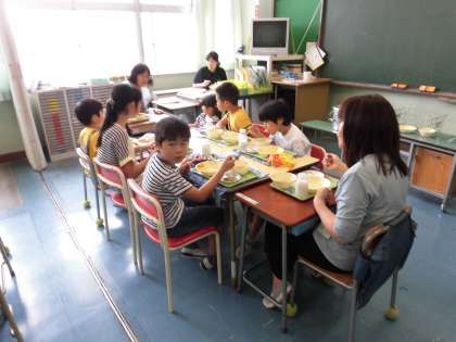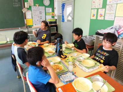 今日は、久しぶりに子供たちと一緒に給食を食べることができました。