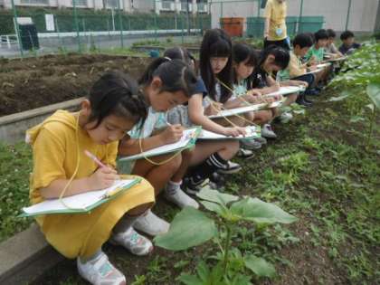 3年生の畑に植えた植物が元気よく育っていきます。