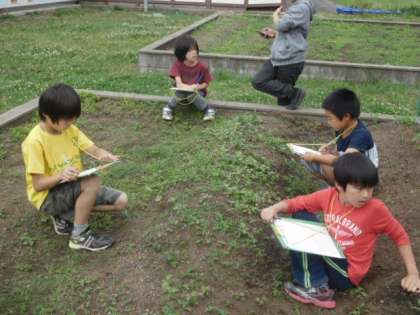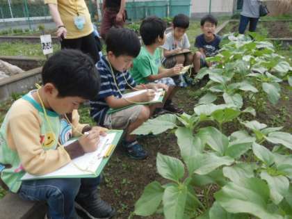 植物の成長に子供たちも驚きながら観察していました。