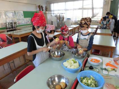 人参、ブロッコリー、キャベツ、じゃがいもをゆでて、