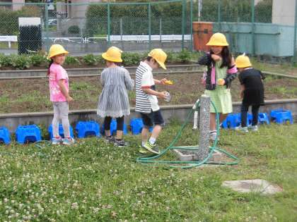 朝から、みんなで仲良く水やりです。