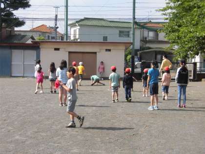 校庭では、