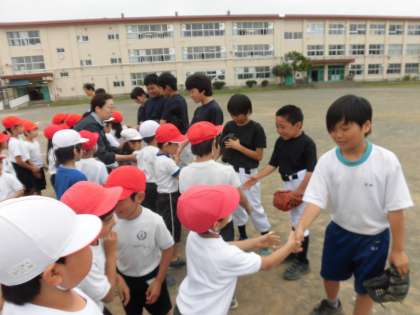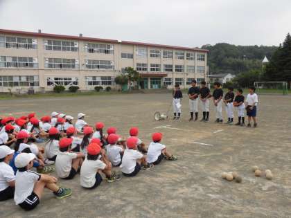 甲ノ原中学校野球部の方に、ソフトボールの投げ方を教えて頂きました。