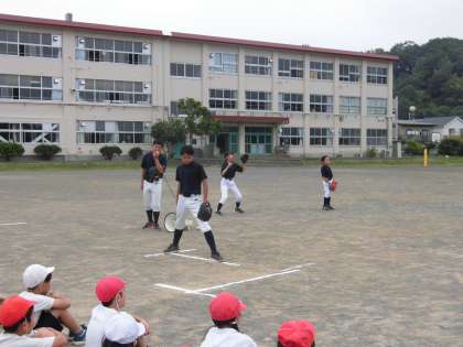 甲ノ原中学校野球部の方に、ソフトボールの投げ方を教えて頂きました。
