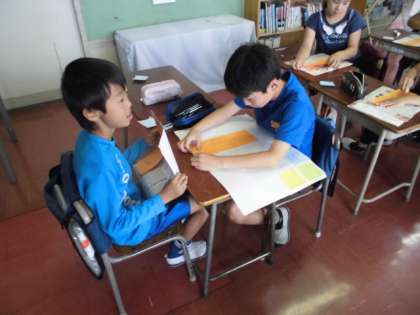 4年生は今、国語で調べたことを整理して書こう「新聞をつくろう」の学習をしています。今までは、実際の子供新聞の記事を切り抜いて切り貼りして新聞を作り、お互いに交換しあってお互いの良いところを見つけてコメント書いていました。