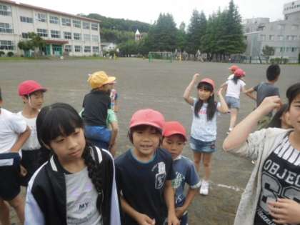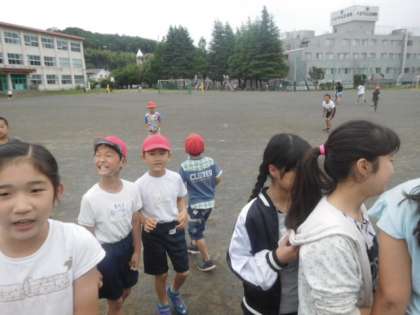 「本日の中休み、ドロケイをやります。参加したい子は赤白帽子をもって朝礼台前に集合してください」