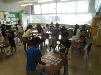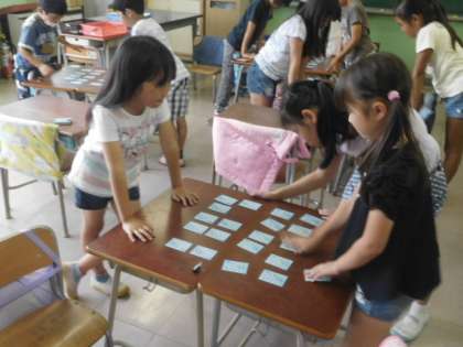 上の句やきまり字で動き出す6年生をどうにか倒そうと3年生も本気で取り組みます。