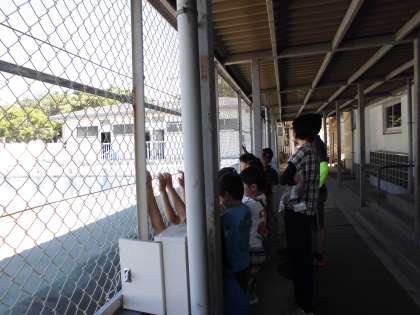 大プールの清掃の様子を見ていました。