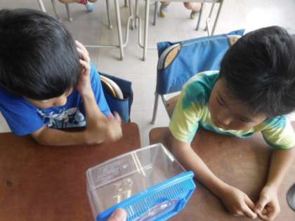 休み時間のたびに虫かごと虫網をもって校庭に飛び出すグループがあります!