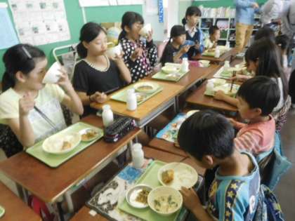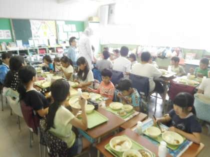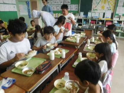 6年生に負けまいとお代わりをする3年生。
