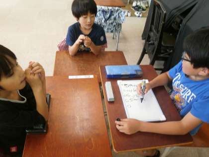 最初にグループになってグループごとに親切についてホワイトボードに書き、発表していました。