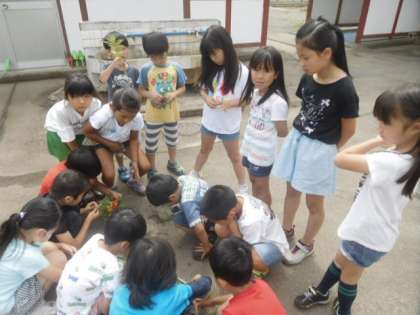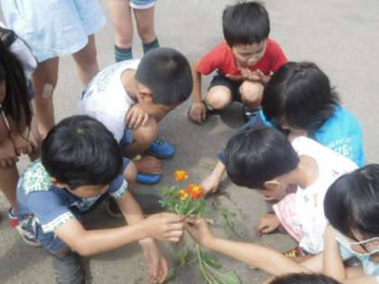 雑草の根っこに子供たちは驚きます。