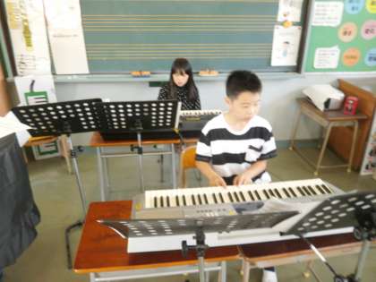 「楽園天国」の練習をパートごとに分かれて練習しました。難しい曲ですが、5年生やる気はすごいです。休み時間も自主的に練習していました。2学期に連合音楽会があります。これなら、大丈夫!!