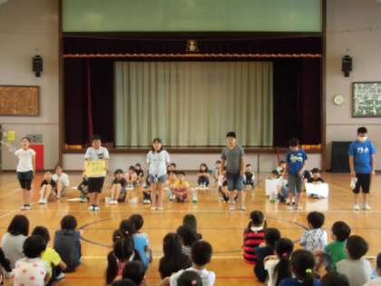 今日の朝の集会は委員会紹介集会でした。環境美化委員会の皆さんです。