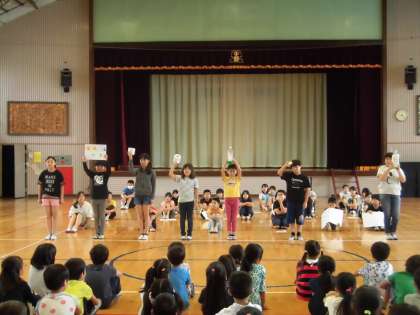 今日の朝の集会は委員会紹介集会でした。保健給食委員会の皆さんです。