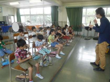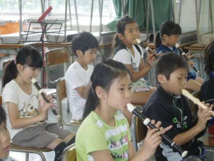 リコーダーで「シ」「ソ」「ラ」を使って曲を演奏します。