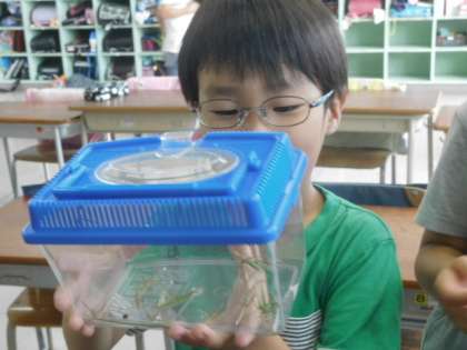 今日はどこからともなくバッタをたくさん捕まえてきます。