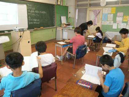 「1本の直線に対して垂直な2本の直線は平行であると言います。」うーん。定義は難しい。でも、担任は「どこまで伸ばしても交わらないってことだよ。」と子どもたちに分かりやすい言葉で教えていました。そうすると子供たちも納得していました。直角、垂直、平行と紛らわしい言葉が出てきます。4年生、ファイト!!
