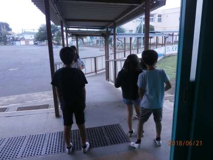 班に分かれて校内を探索です。