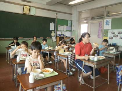 今日の2年生は担任の先生が休みの中とても頑張っていました。自分たちが普段しているようにいろいろな事を教えてくれました。「カメのえさは日直さんがあげるんだよ。」「給食はこういう席でするんだよ。」中野北小自慢の2年生達です。給食も全員がもりもり食べていて残菜はありませんでした。
